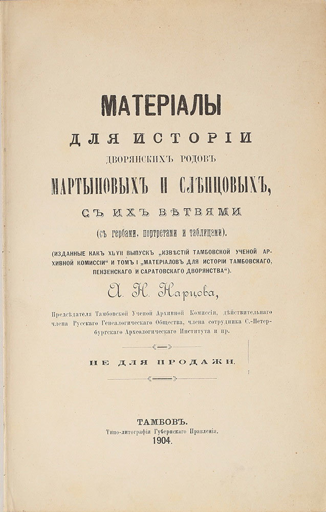 Narcov A. Materialy dlya istorii dvoryanskih rodov Martynovyh i Slepcovyh s ih v