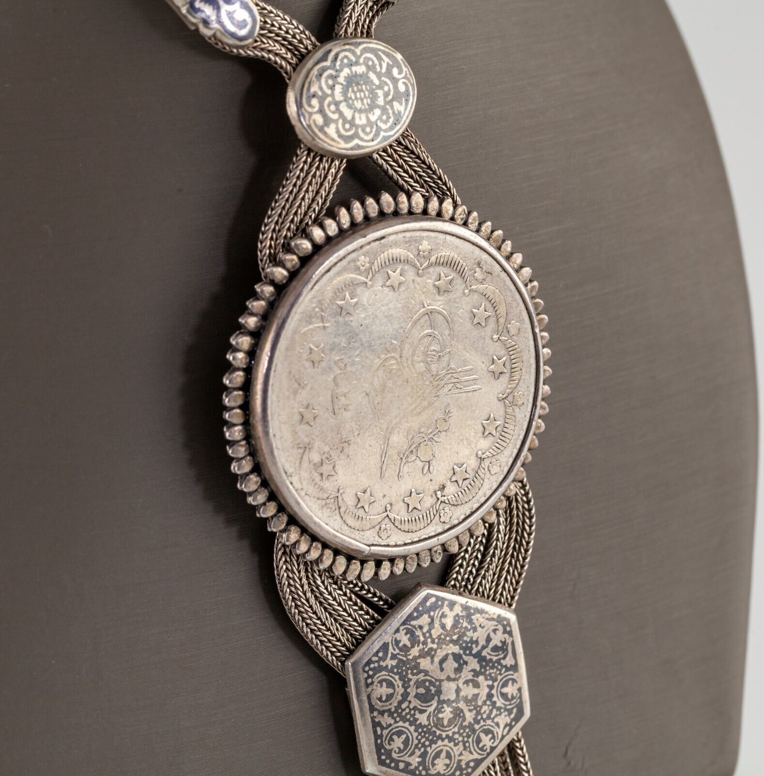 Gorgeous 900 Sterling Silver Niello Anatoli Necklace with Coin Medallion 24"