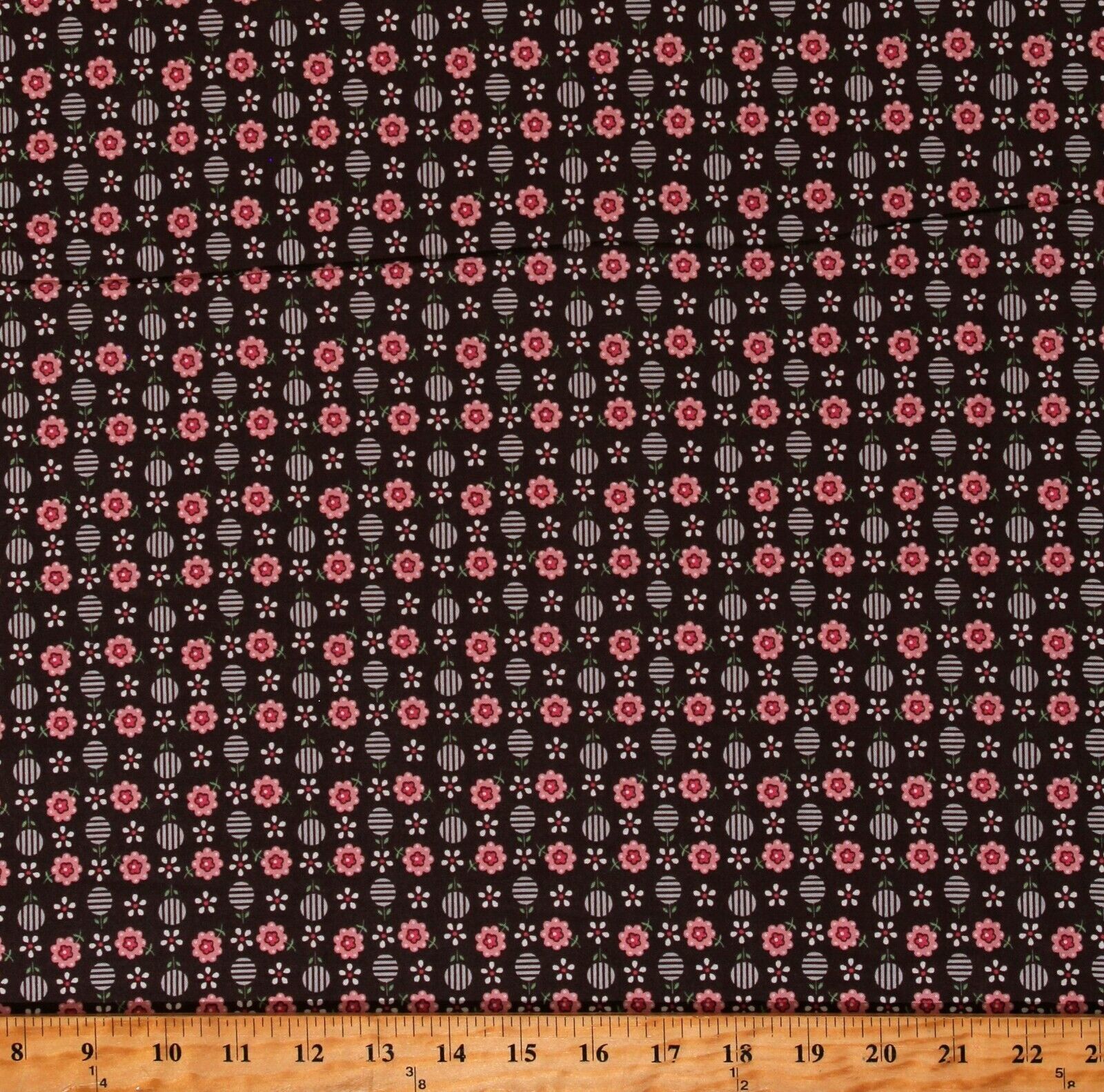 Cotton Bee Dots Flowers Plants Dots Stripes Raisin Fabric Print by Yard D384.53