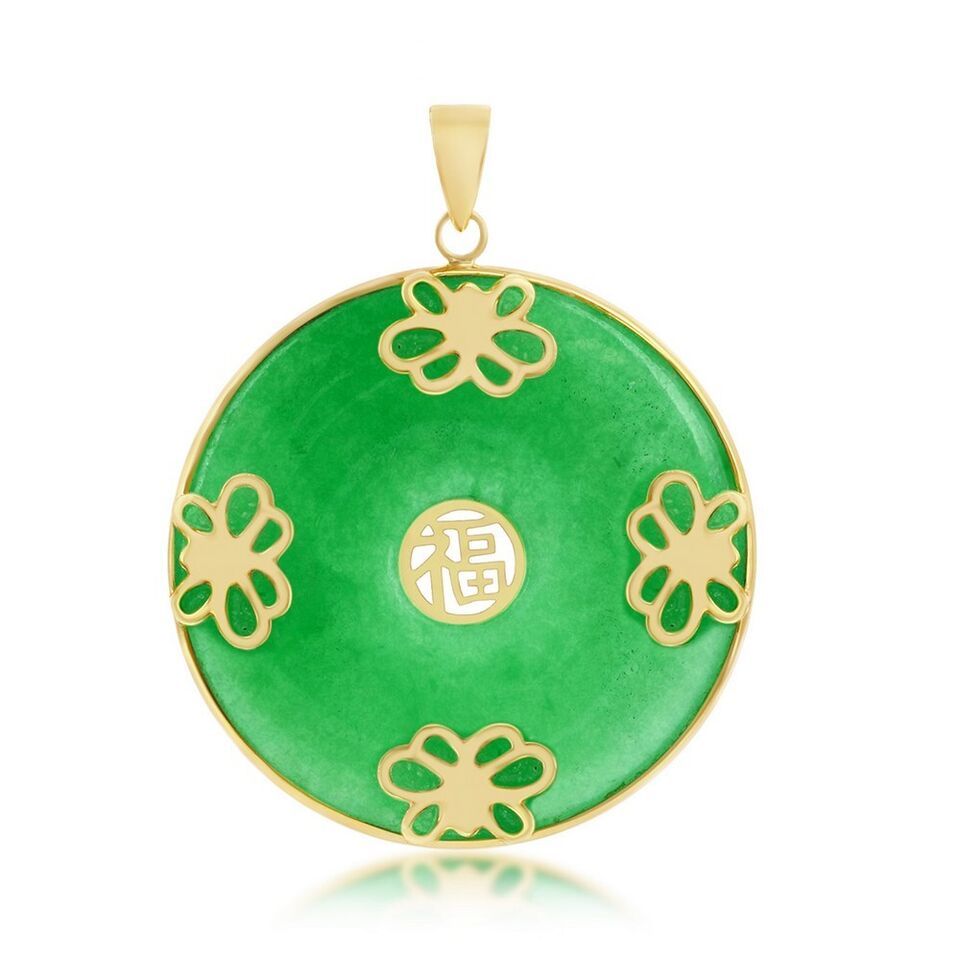14K Yellow Gold, Round Jade Butterfly 'Good Luck' Pendant