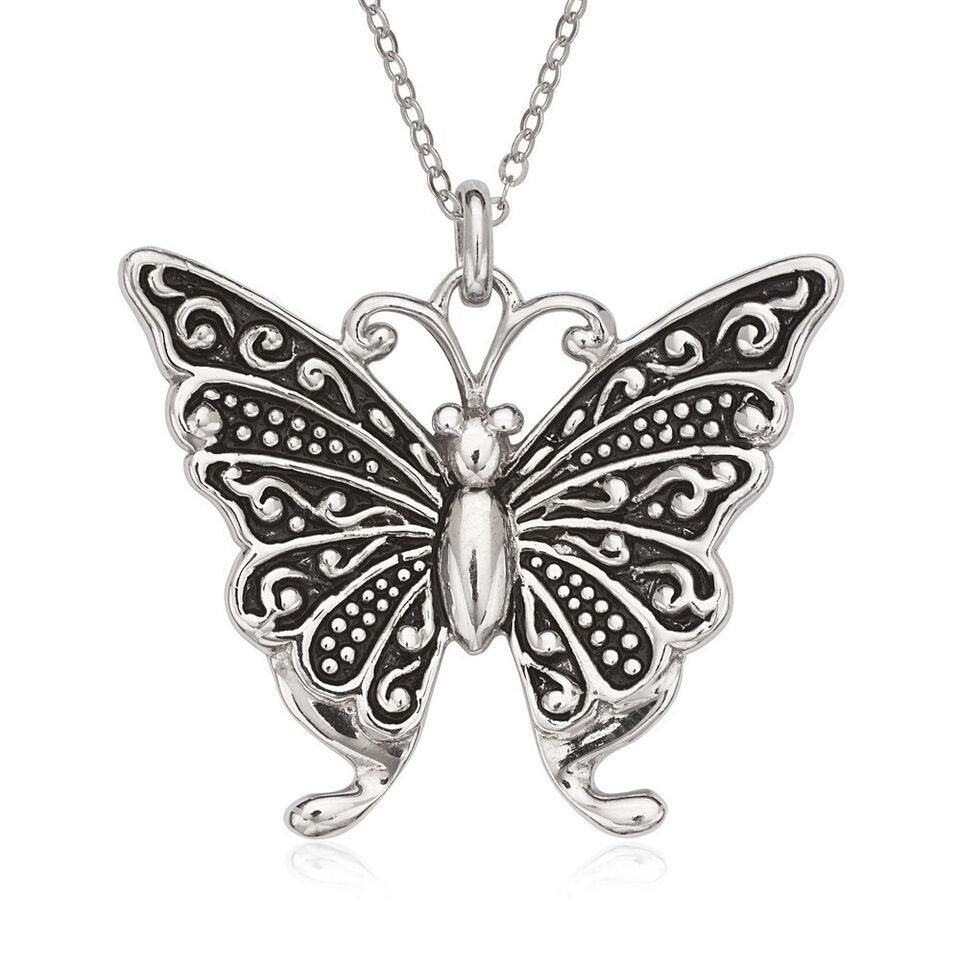 Sterling Silver Fancy Oxidized Butterfly Pendant