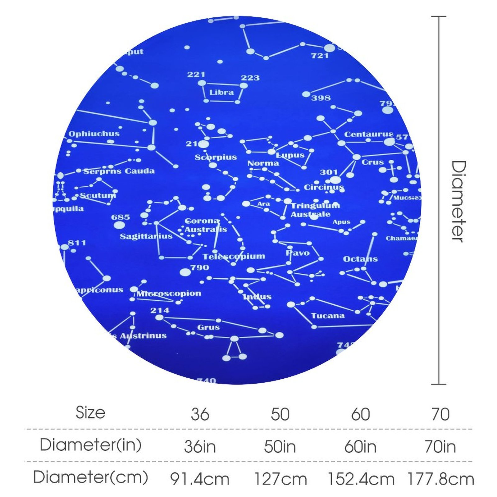 2, Size: 60 x 60 Inch/ 152.5 x 152.5 cm. 70 x 70 Inch/ 178 x 178 cm. 36 x 36in/ 91.4 x 91.4cm, 50 x 50 in/ 127 x 127cm.