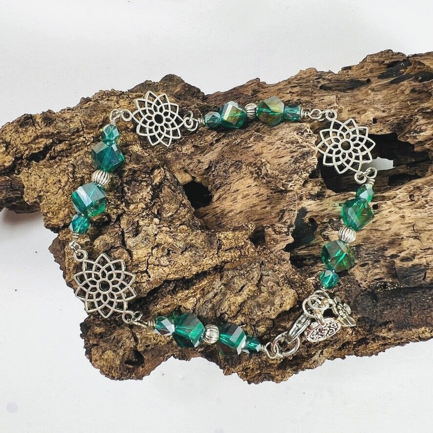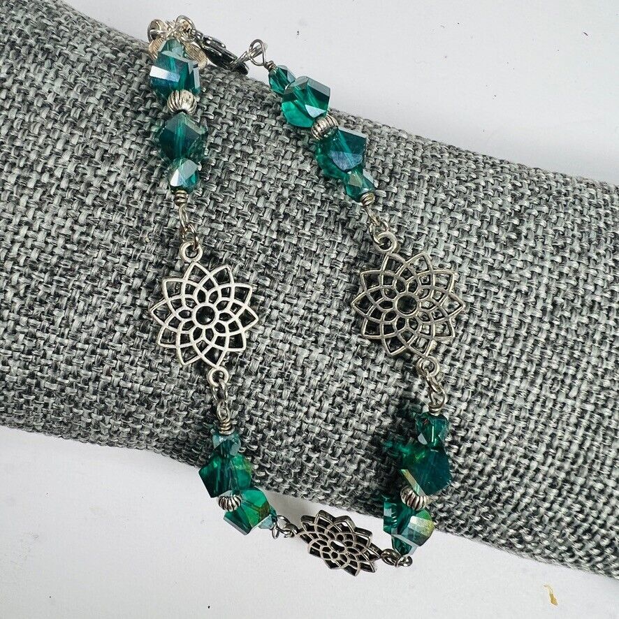 Swarovski Crystal Aqua Bracelet Flower Bead Silver Tone Handmade