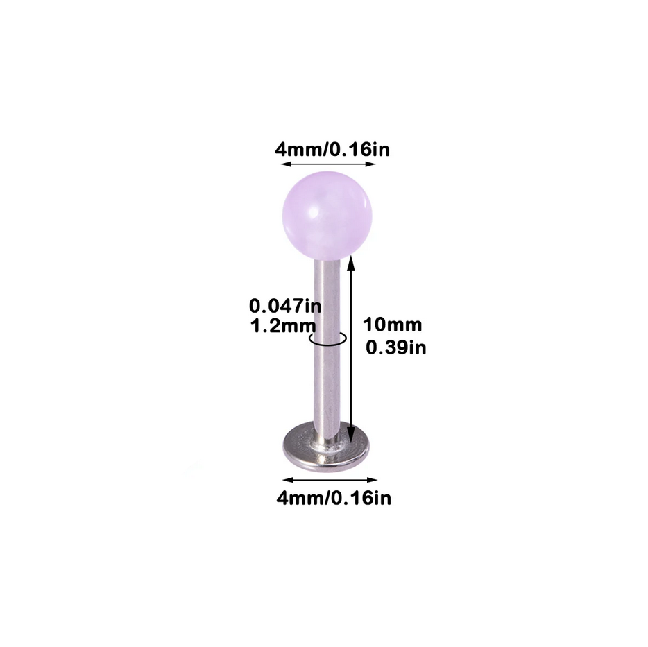 6PC Stainless Steel Glow in the Dark Acrylic Ball 16G Labret Bar Piercing