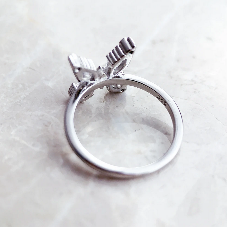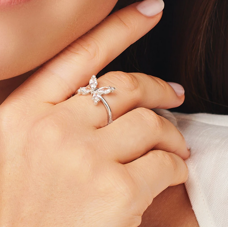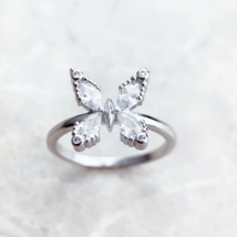 Elegant 925 Sterling Silver White Zirconia Butterfly Ring
