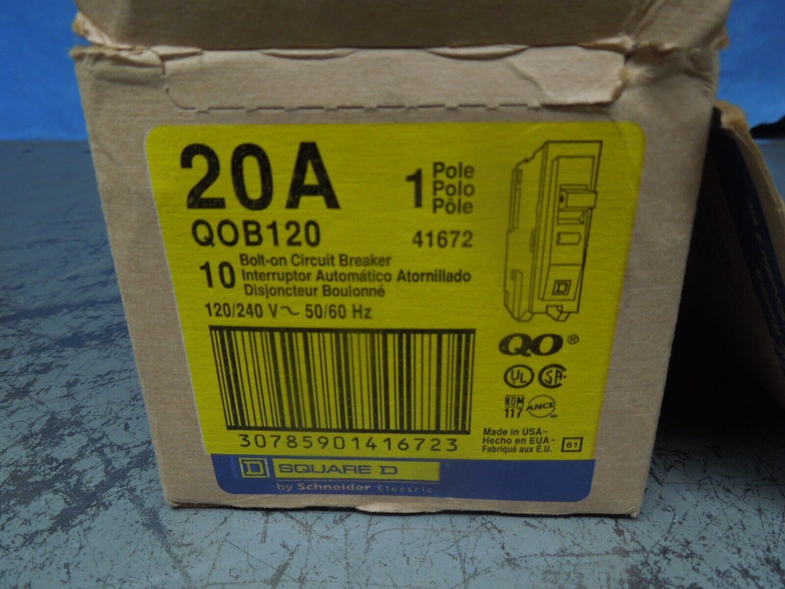 Square D QOB120 20A 1P 120V Bolt-On Circuit Breakers New Surplus Box of 10