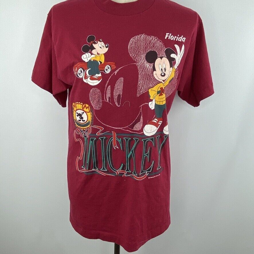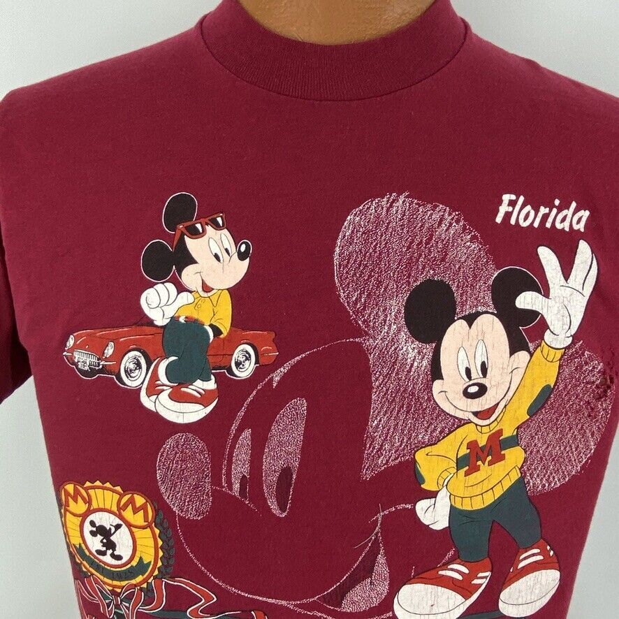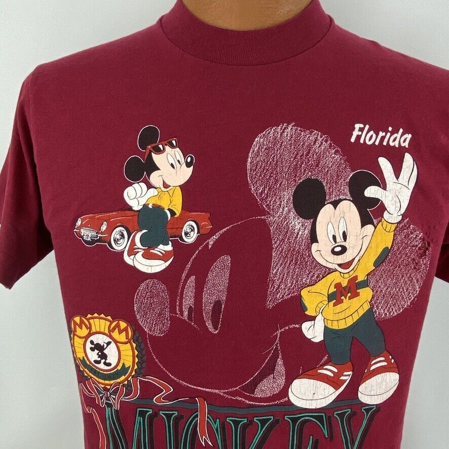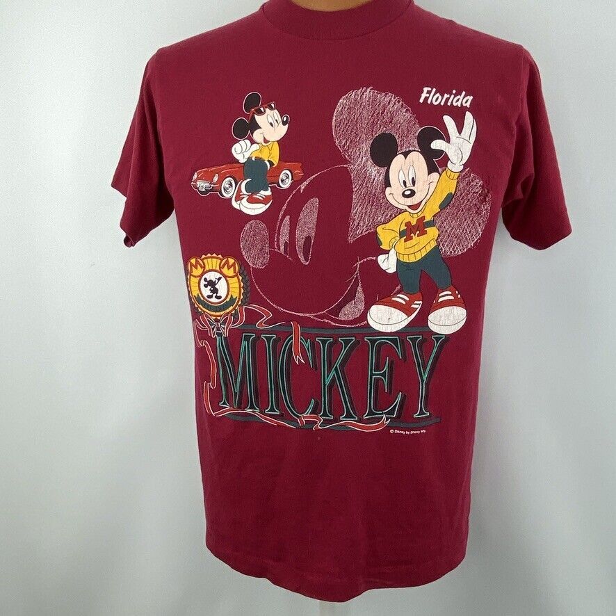 Vintage Disney Mickey Mouse T Shirt Medium Single Stitch Florida Burgundy