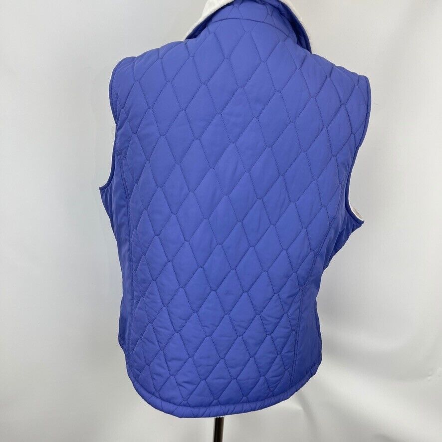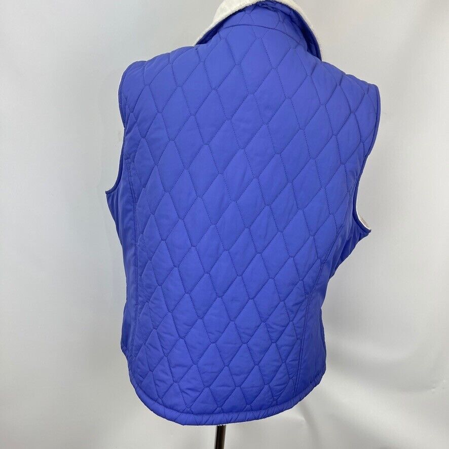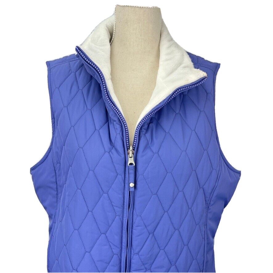 Free Country L Blue Reversable Diamond Quilted Vest White Micro Fleece Full Zip