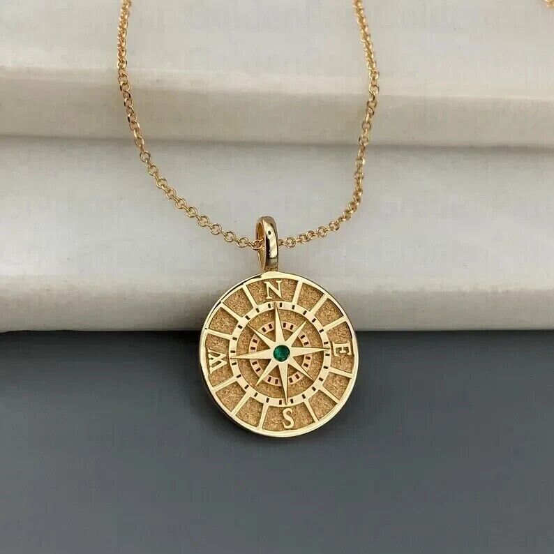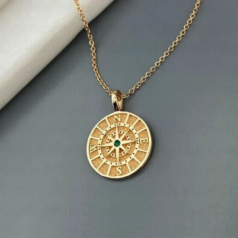 0.50Ct Round Lab-Created Emerald Classic Compass Pendant 14k Yellow Gold Plated