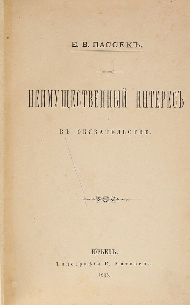 E.V.Passek. Neimushchestvennyj interes v obyazatel'stve. Yuryev. 1893/E.V.Passek