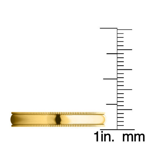 Genuine Solid 14k Yellow Gold 4mm Comfort-fit Milgrain Wedding Band Size 4 to 12