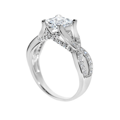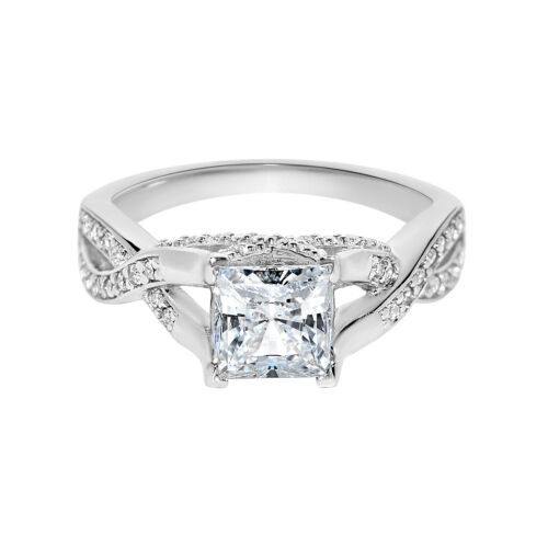This knot style is a stunning engagement ring, perfect for symbolizing your commitment. Its bypass sides create a captivating design, while the sparkling princess-cut center stone takes center stage. Crafted from 14k white solid gold, The Knot exudes elegance and sophistication.