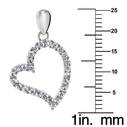 Genuine 14k White Gold 0.78" Cubic Zirconia Open Heart Pendant Necklace 16"-22"