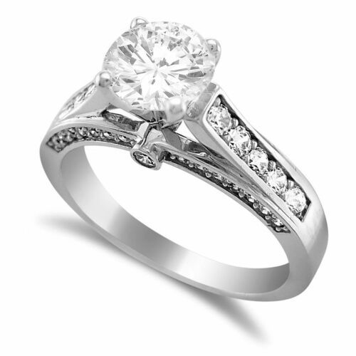 Solid Genuine 14k White Gold 1 1/2ct Round Fine Cubic Zirconia Engagement Ring