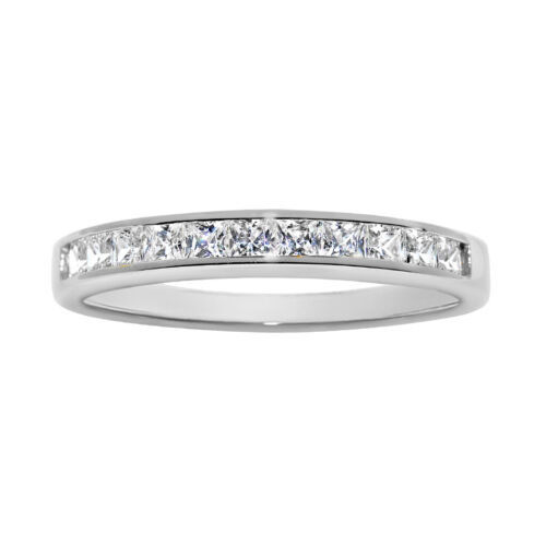 Solid Genuine 14k White Gold 5/8ct Princess Fine Cubic Zirconia Wedding Band