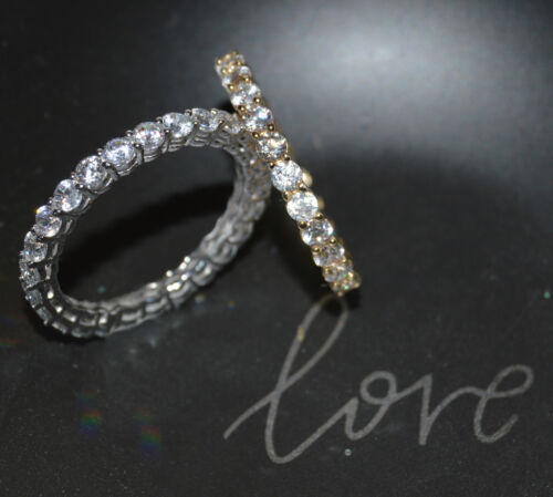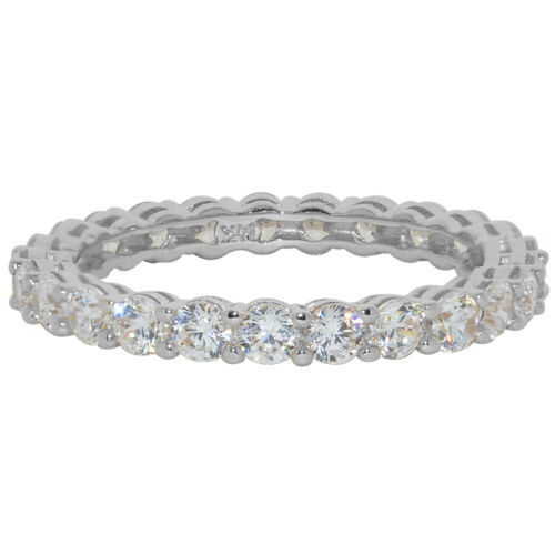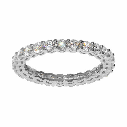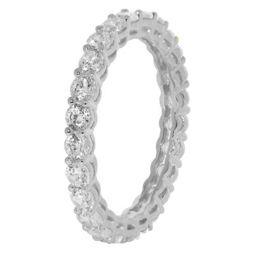 Genuine 14k White Gold Prong-Set Round Cubic Zirconia Eternity Band Sizes 5-9