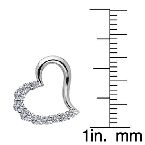 Genuine 14k White Gold 0.59" CZ Sideways Heart Slider Pendant Necklace 16" to 22