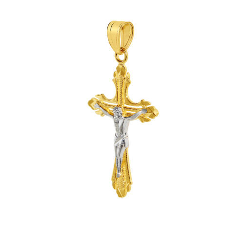 Precious Stars 14k Two-Tone Gold Crucifix Religious Pendant