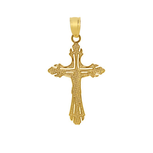 In terms of dimensions, the pendant has a width of 25 mm and a length of 35 mm, providing a noticeable yet refined presence. This 14k gold pendant combines quality craftsmanship with a meaningful expression of Christian beliefs. The careful detailing in its design ensures that each piece is unique, reflecting both personal devotion and style. Whether as a gift for a loved one or a personal keepsake, this crucifix pendant embodies both elegance and spiritual significance.