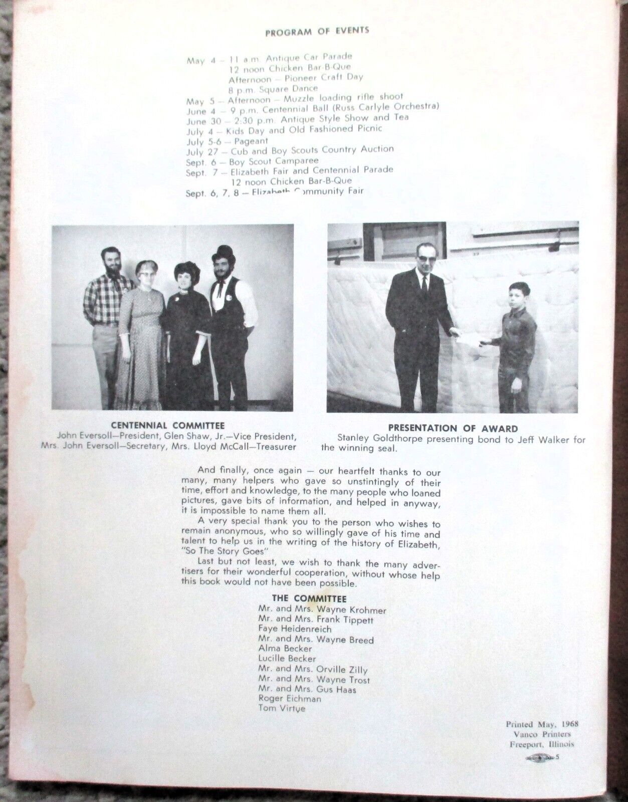 ELIZABETH, ILLINOIS CENTENNIAL 1868 to 1968