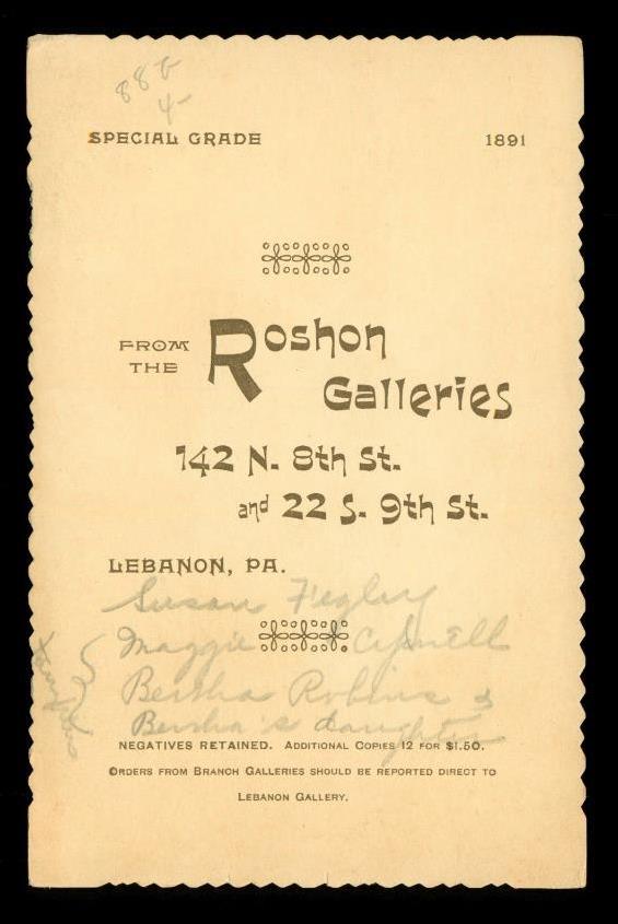 Vintage Cabinet Photo Roshon Studio Lebanon PA Bertha Robbins Family Portrait - identified on the back of the photo. Measures 6.5" by 4.25". No smoke or pet odor.