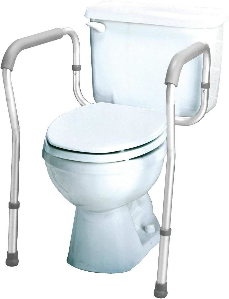 Carex Toilet Safety Rails - Toilet Safety Frame For Elderly, Handicap, or Disabled - Toilet Rails For Home Use Safely Sit and Stand at Your Toilet The Toilet Safety Frame features Hypalon cushion grips for added comfort and stability. This easy to assemble safety frame allows users to safely stand or sit at the toilet. The height is adjustable and the width adjusts from 18 to 20 inches to fit most toilets. This toilet safety frame will give added security while standing or sitting at the toilet. Features Benefits: Supports weight capacity of 300 lbs. Adjustable height and width from 18" to 20" Product weighs 3 lbs. Safely stand or sit at the toilet