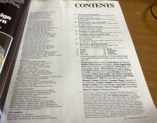 AIA Journal June 1983. Monthly publication of the American Institute of Architects. Ex-library in good condition. See pictures for table of contents. Feel free to email with questions. I do combine shipping on multiple purchases. Have a great day!