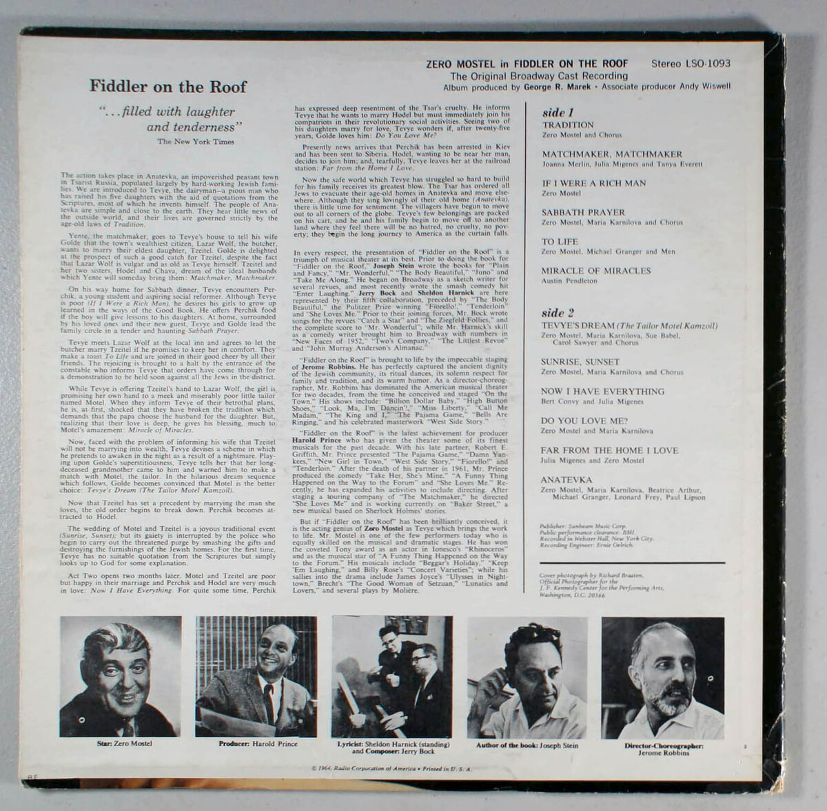 Zero Mostel - Fiddler on the Roof (1964) Vinyl LP Broadway Soundtrack