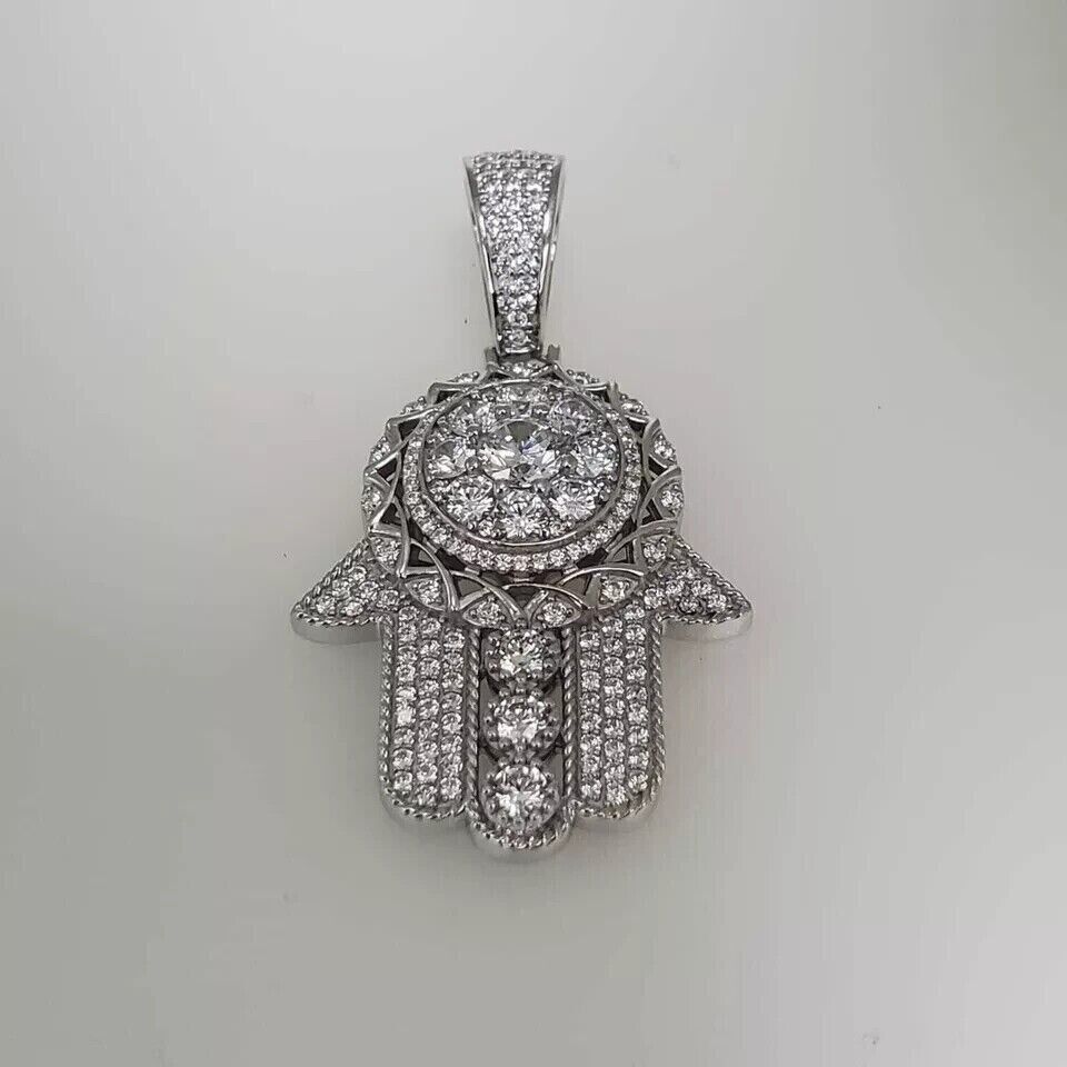 3Ct Round Cut Lab Created Diamond Hamsa Hand Pendant 14k White Gold Plated