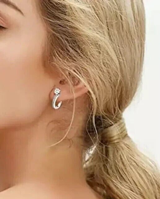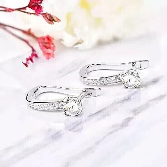 2Ct Round Cut Lab Created Diamond Women's Huggie Earrings 14K White Gold Plated
