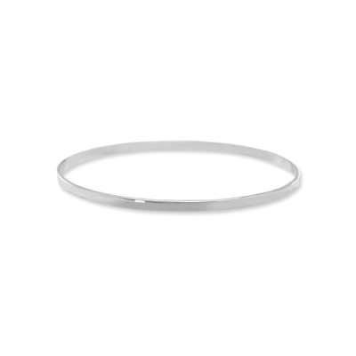 Crafted from high-quality .925 sterling silver, this flat bangle bracelet boasts a sleek and minimalist design, measuring approximately 3.2mm in width. Its polished surface reflects light beautifully, adding a subtle shimmer to your wrist.