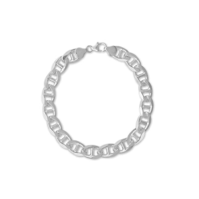 Elevate your style with this classic wide 9mm sterling silver flat marina chain bracelet. Designed with timeless elegance, this bracelet features a sturdy lobster clasp closure for secure wear. With a length of 8 inches, it drapes comfortably on the wrist, adding a touch of sophistication to any ensemble. Crafted with precision from .925 sterling silver, this piece reflects both quality and enduring style. Made in Italy, it embodies the craftsmanship and artistry synonymous with Italian jewelry. Enhance your collection with this versatile and beautifully crafted sterling silver marina chain bracelet, a staple accessory for both casual and formal occasions.