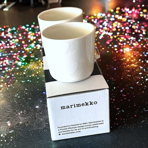 Featuring the iconic Unikko floral pattern, this set of two cups is a delightful addition to any kitchen. The cups come in a new, unopened box, ensuring they are in pristine condition upon arrival. Indulge in the Marimekko brand and add a touch of elegance to your daily routine with these charming coffee cups.