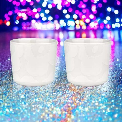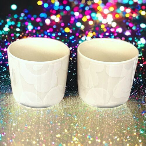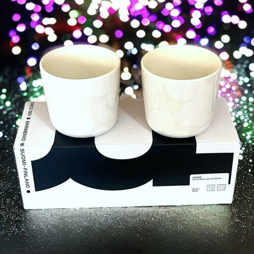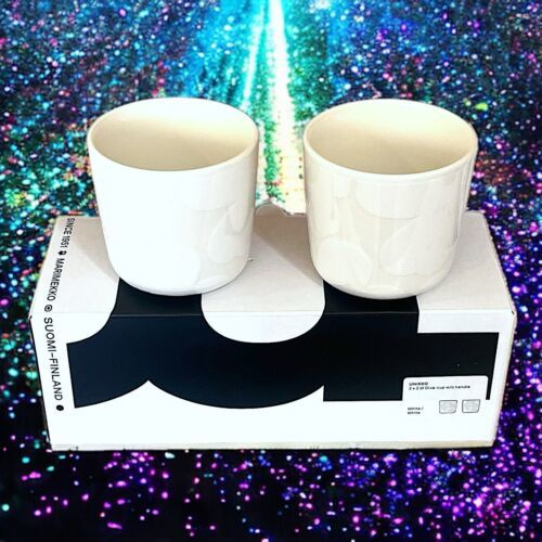 Marimekko Oiva Unikko Coffee Cup Without Handle in White Set Of 2 New In Box