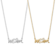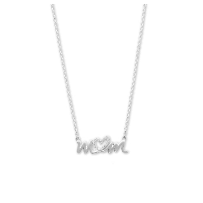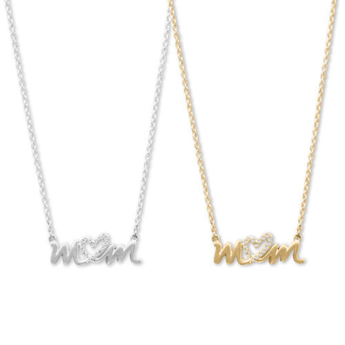 Silver or14k Gold Plated Sterling Silver CZ Heart "mom" 16" + 2" Necklace