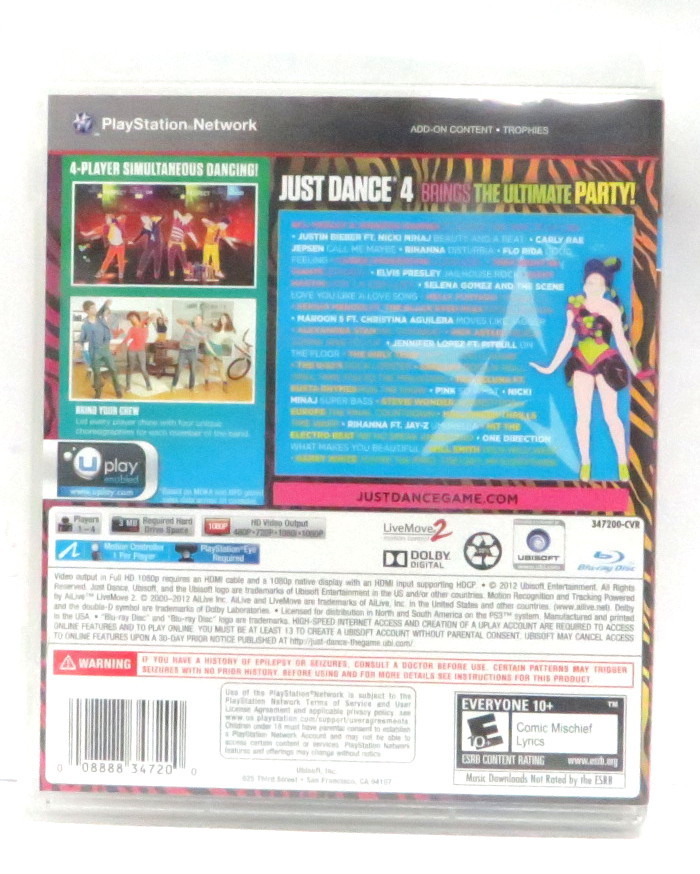 Color: ChromeSize: 1 DiscModel number: Just Dance 4Type: GameBrand: SonyModel Name: Playstation 3UPC: 008888347200Condition:Used