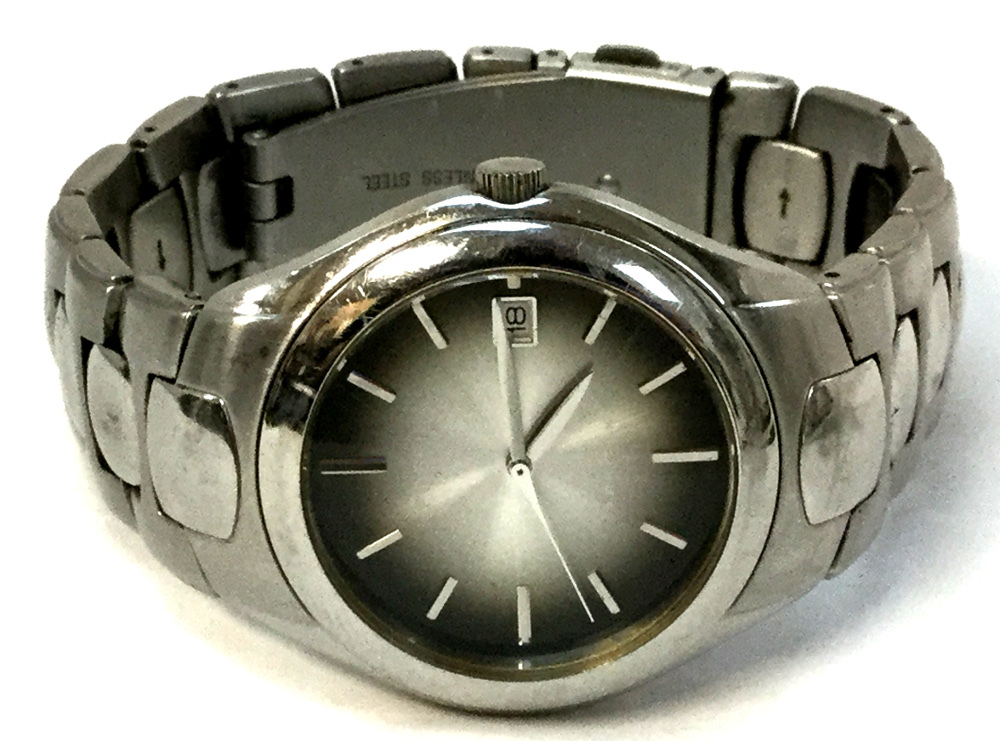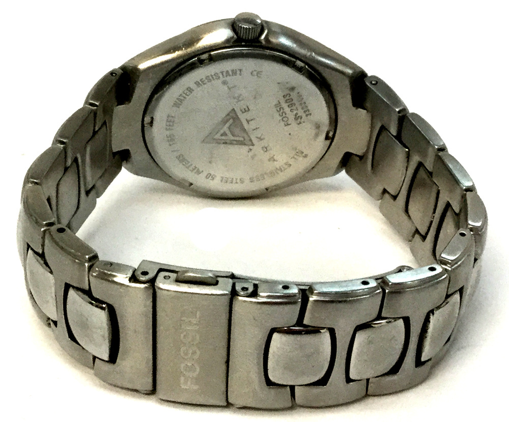 Case width: 35mmModel number: FS-2903Type: Wrist watchBrand: FossilWeight: 89.6Bracelet length: 8.5"Movement type: Quartz (Battery)Case Material: Stainless SteelBox included: noPaperwork included: noRunning: yesDial color: SilverBand material: Stainless SteelCondition:Used