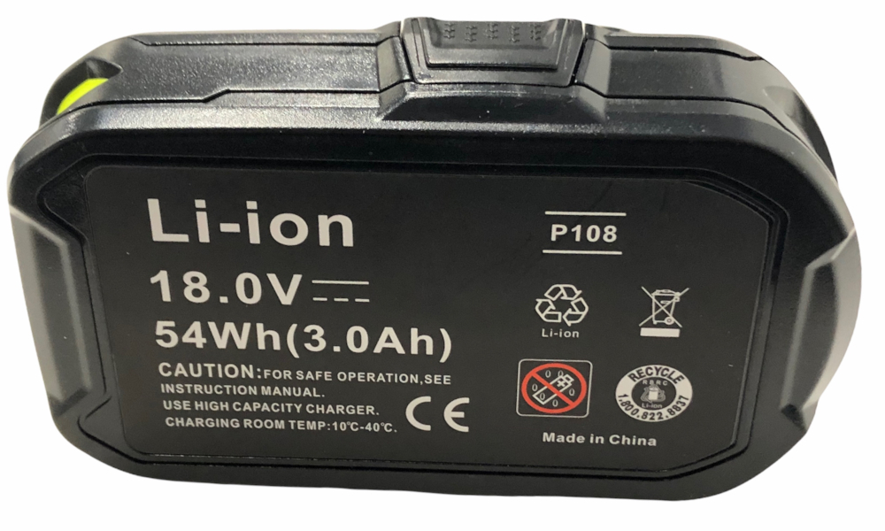 Category: Cordless hand toolsType: BatteryBrand: RyobiModel number: P108Size: 3.0AhColor: Black/greenPower source: BatteryVoltage: 18VModel name: 1Number of pieces: yesDrive Size: noBattery Included: noCondition:New (No Box)Notes:Aftermarket replacement for Ryobi brand 18V Lithium-ion tools.