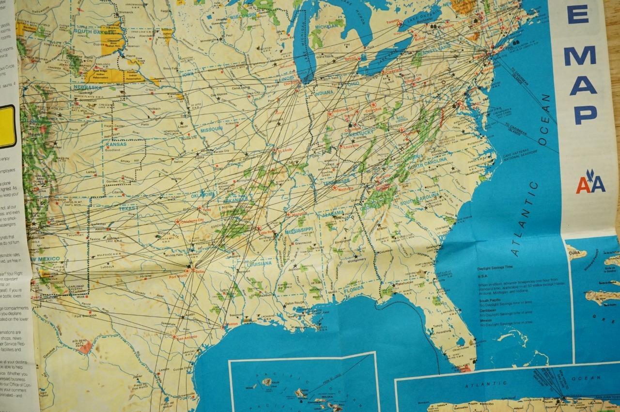 VINTAGE Paper Ephemera American Airlines Transportation Route Map 1974