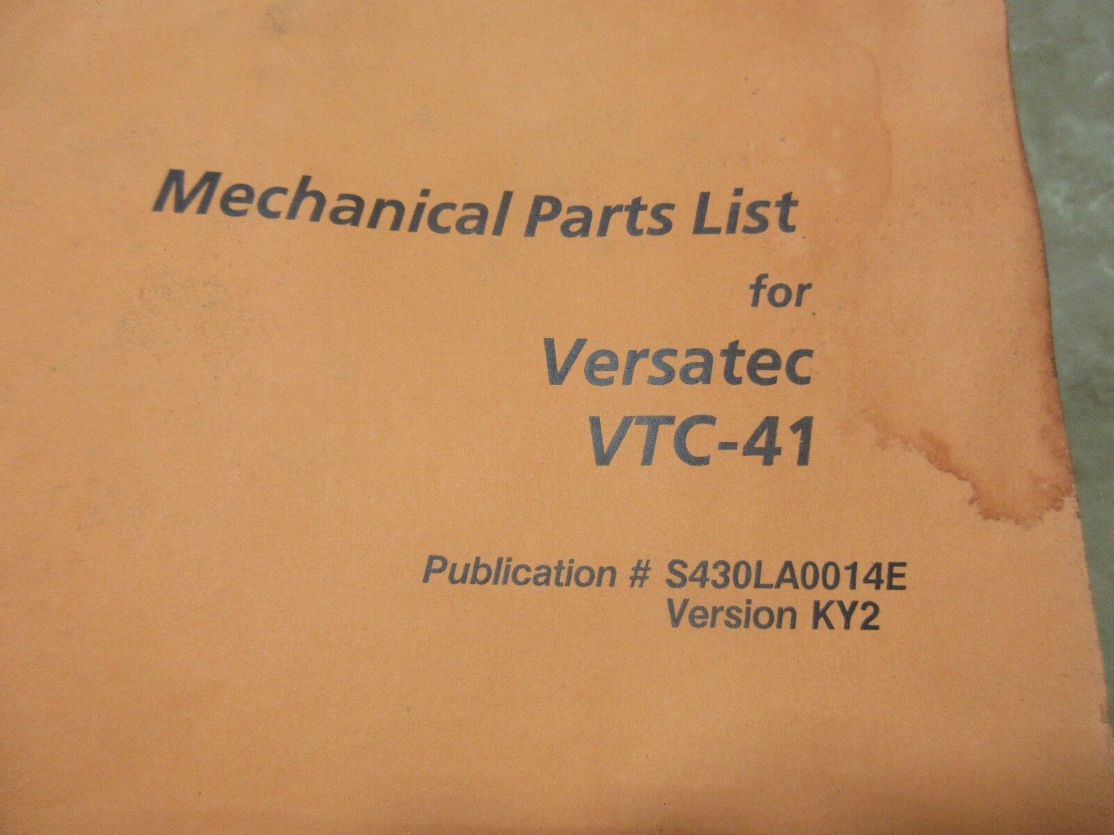MAZAK MECHANICAL PARTS LIST FOR VERSATEC VTC-41 S430LA0014E V.KY2 CNC MILL