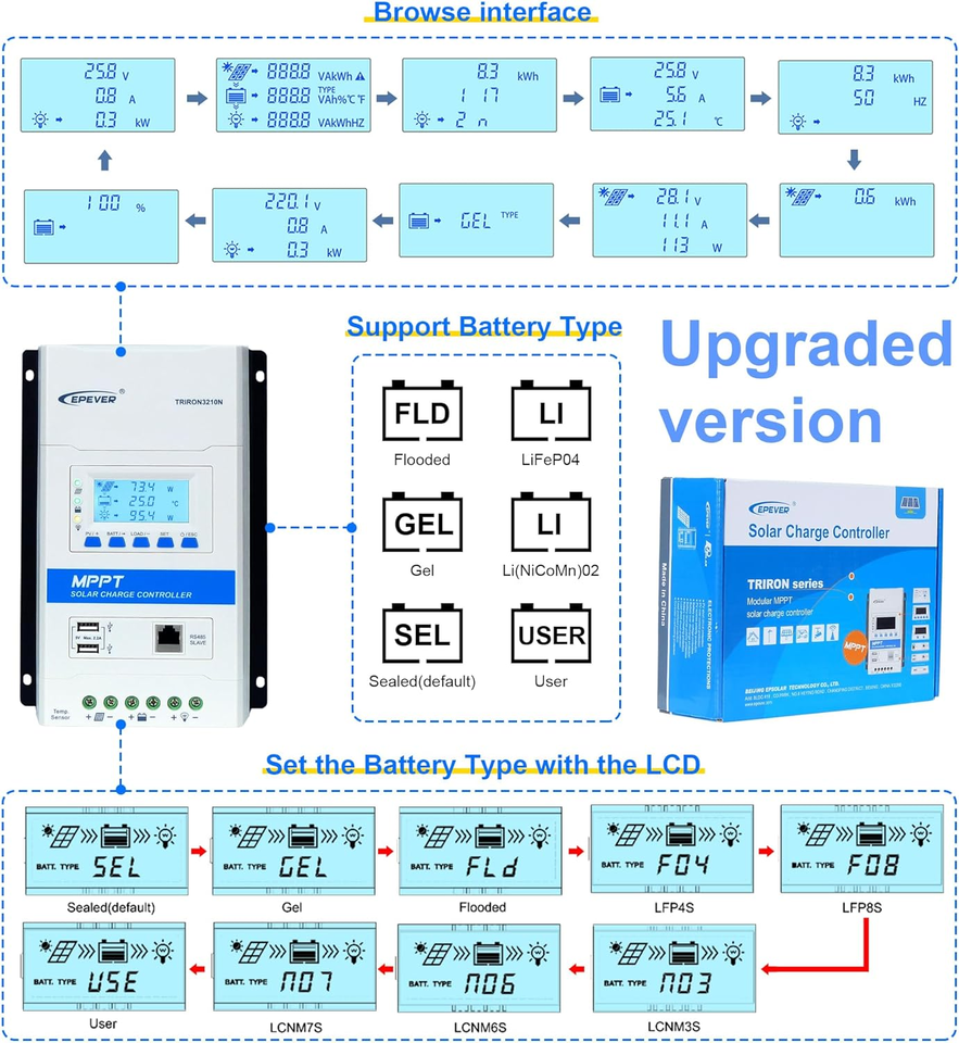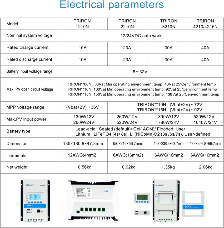 Note :EPEVER Triron-N series mppt solar charge controller is upgraded version, new designmodule, better funcations and advanced technology .