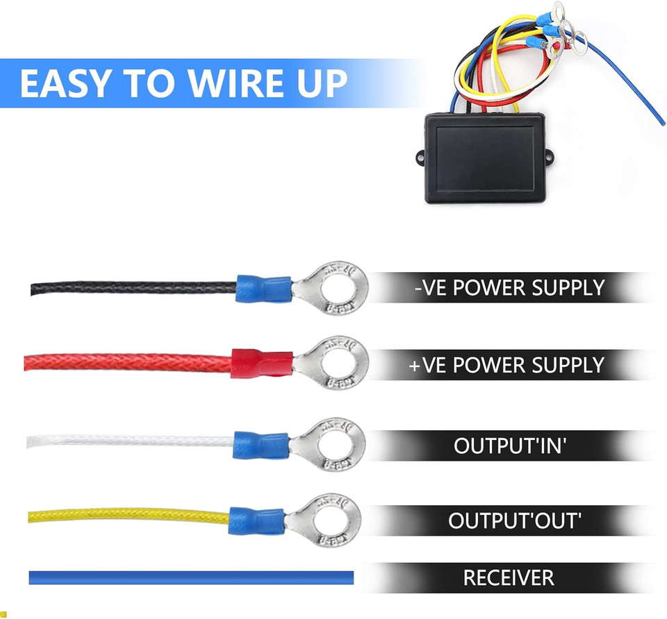 ?Package Includes?Wireless winch remote include 1pc 12V 250A Winch Solenoid Relay + 1pc 12V Wireless Winch Receiver + 2pcs 12V Wireless Winch Remote Control