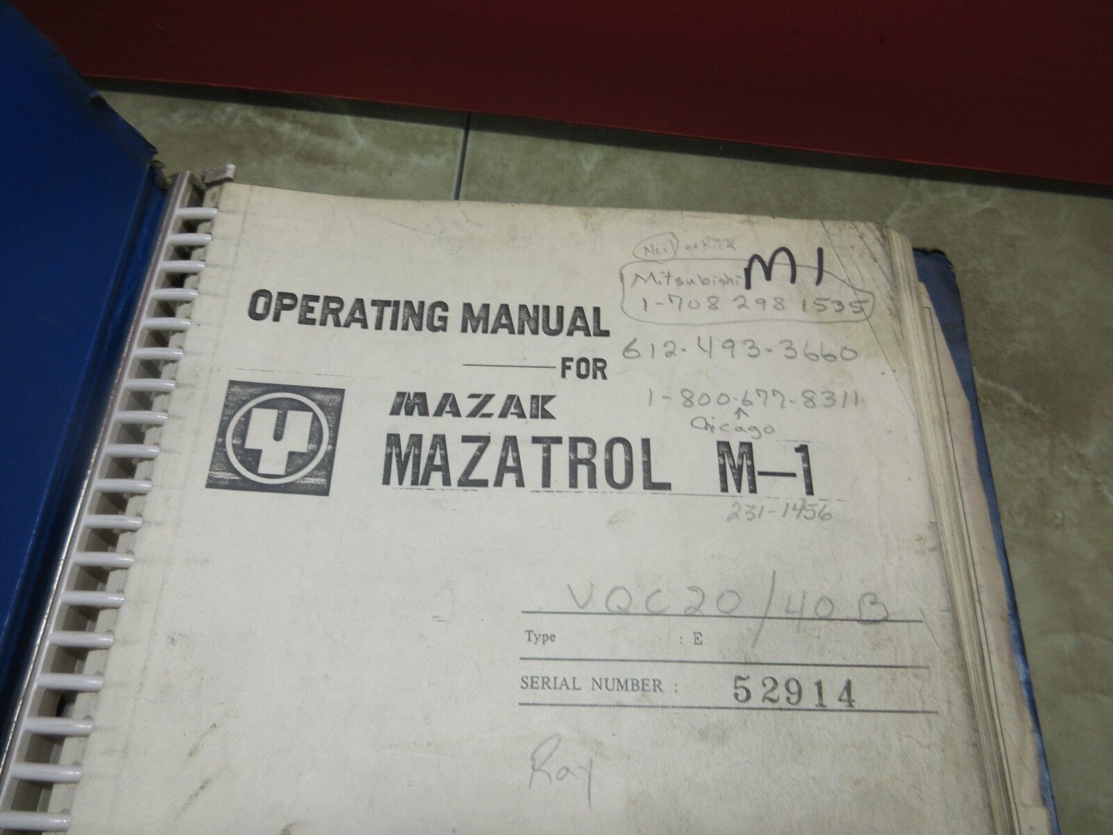 YAMAZAKI MAZAK OPERATING MANUAL M-1 VQC-20/40B 52914 CNC VERTICAL MILL