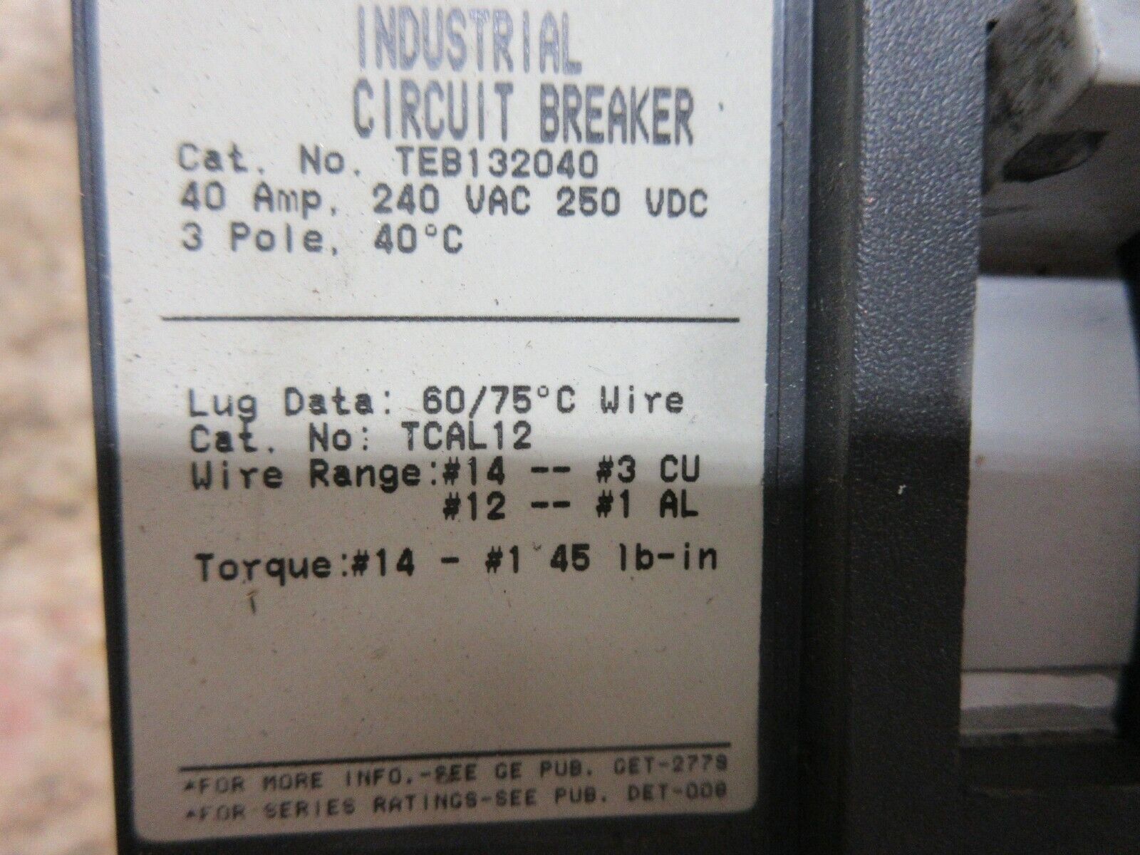 Ge Industriale Disgiuntore Gatto N° TEB132040 TCAL12 HAAS VF3 CNC Mulino