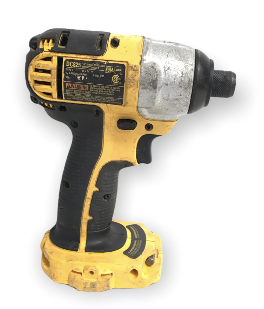 Category: Cordless hand toolsType: DrillBrand: DewaltModel number: DC825Model name: Impact DriverSize: 1/4Color: black/yellowPower source: BatteryBattery Included: noCase included: noCharger Included: noVoltage: 18vCondition:Used