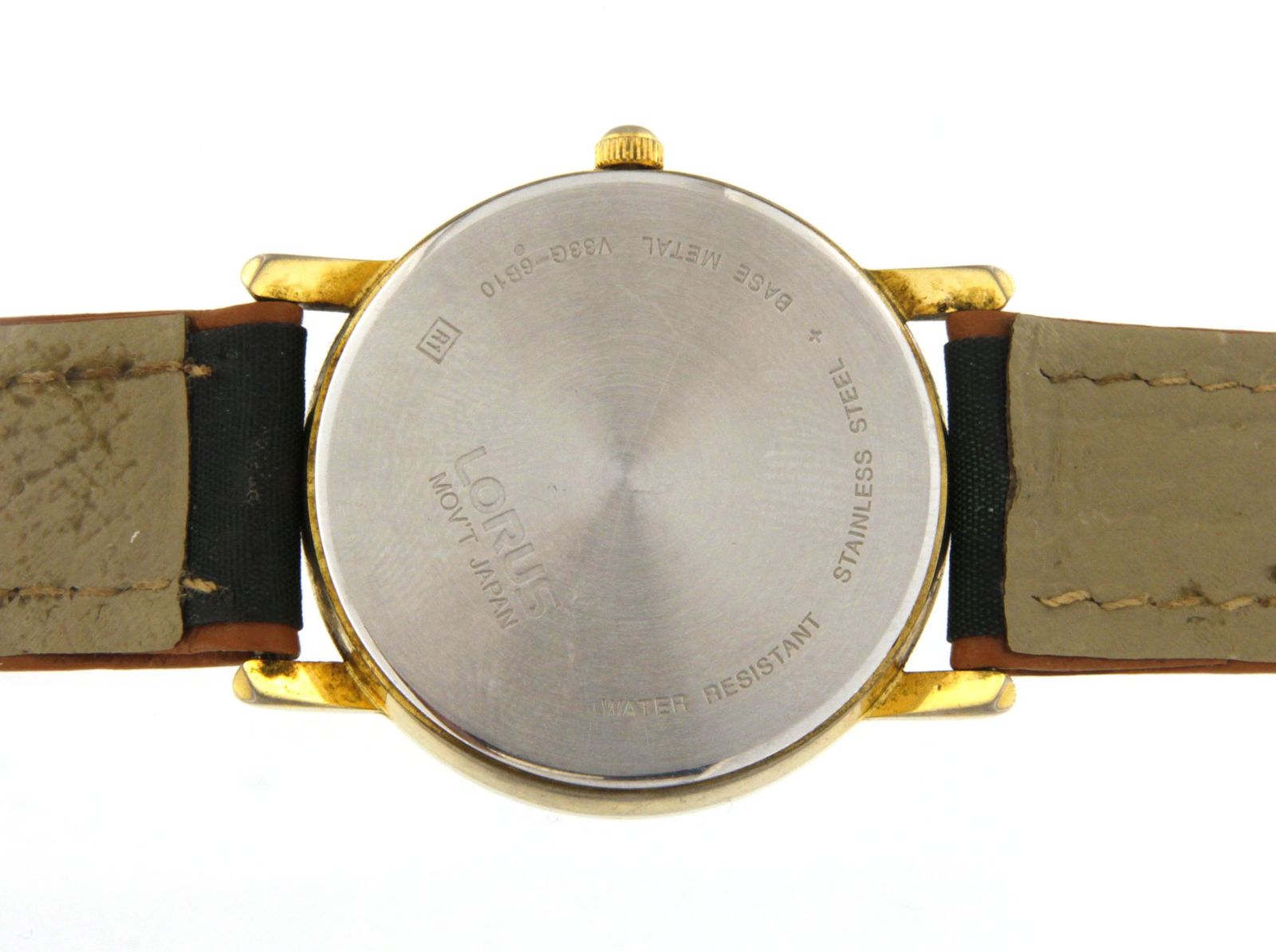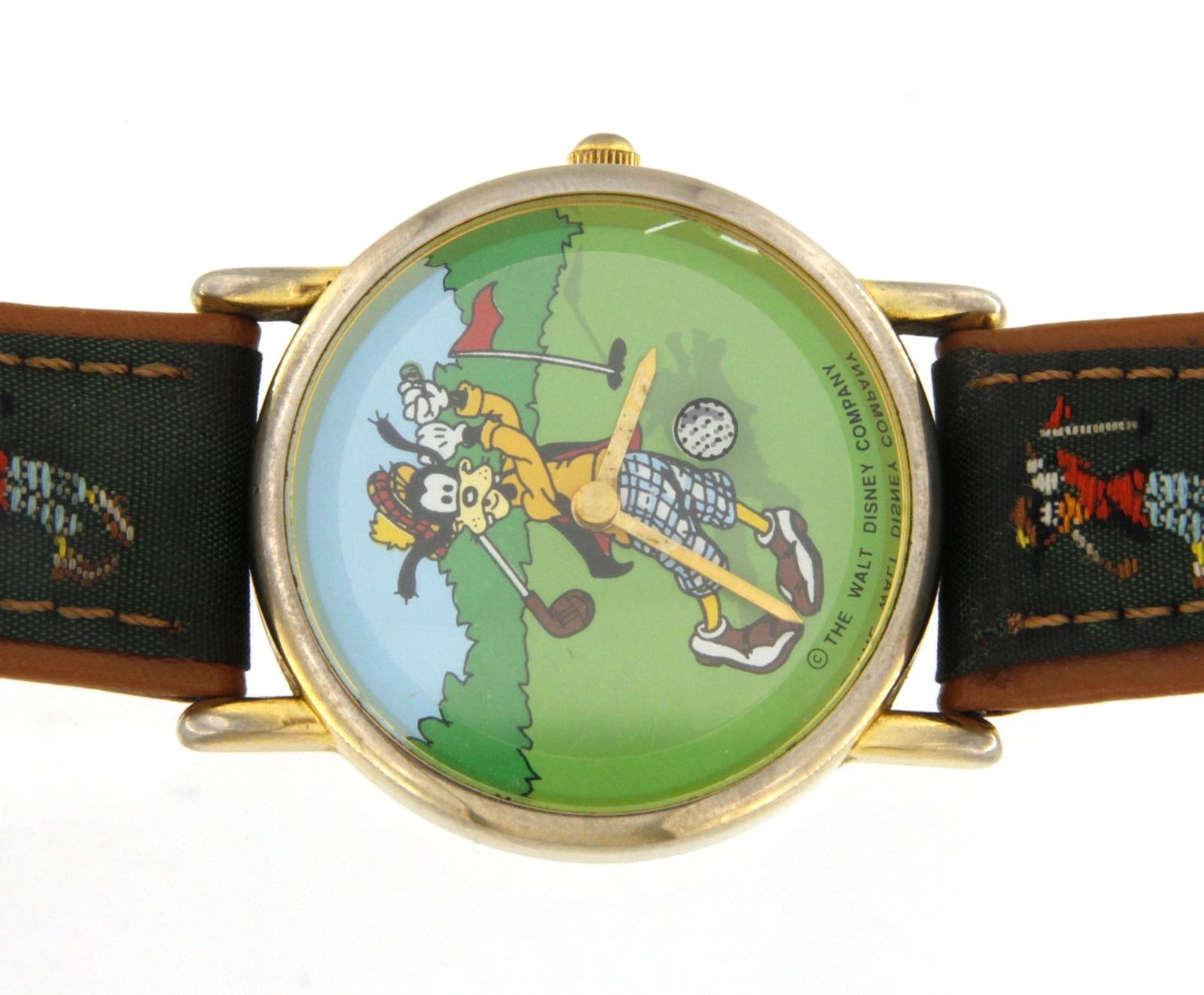 Type: Wrist watchBrand: LorusModel number: Disney Goofy GolfingModel name: Disney Store Goofy GolfingCase width: 32mmWeight: 20.4Bracelet length: 8"Movement type: Quartz (Battery)Year: 1990sCase Material: Gold plated over StainlessBox included: noPaperwork included: noRunning: yesKarat: GreenDial color: LeatherCondition:UsedNotes:Watch is a Disney Store Exclusive in good preowned condition, golf ball is seconds hand. Case back is not original for this watch.