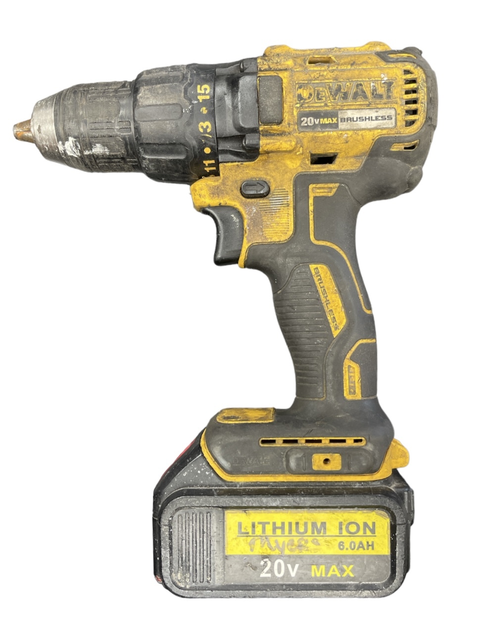 Category: Cordless hand toolsType: DrillBrand: DewaltModel number: dcd777Model name: drill driverSize: 20vColor: yellowPower source: BatteryBattery Included: yesCase included: noCharger Included: noVoltage: 20Condition:UsedNotes:Comes with 6ah after market battery.