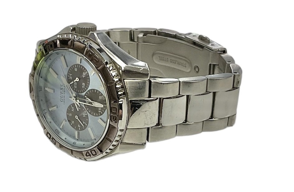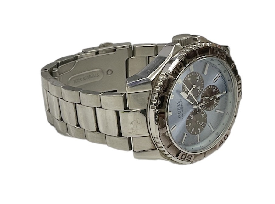 Type: Wrist watchBrand: GuessModel number: ClassicCase width: 42mmWeight: 114.4Case Material: Stainless SteelBox included: noPaperwork included: noRunning: noDial color: BlueModel name: Quartz (Battery)Bracelet length: Stainless SteelCondition:Used