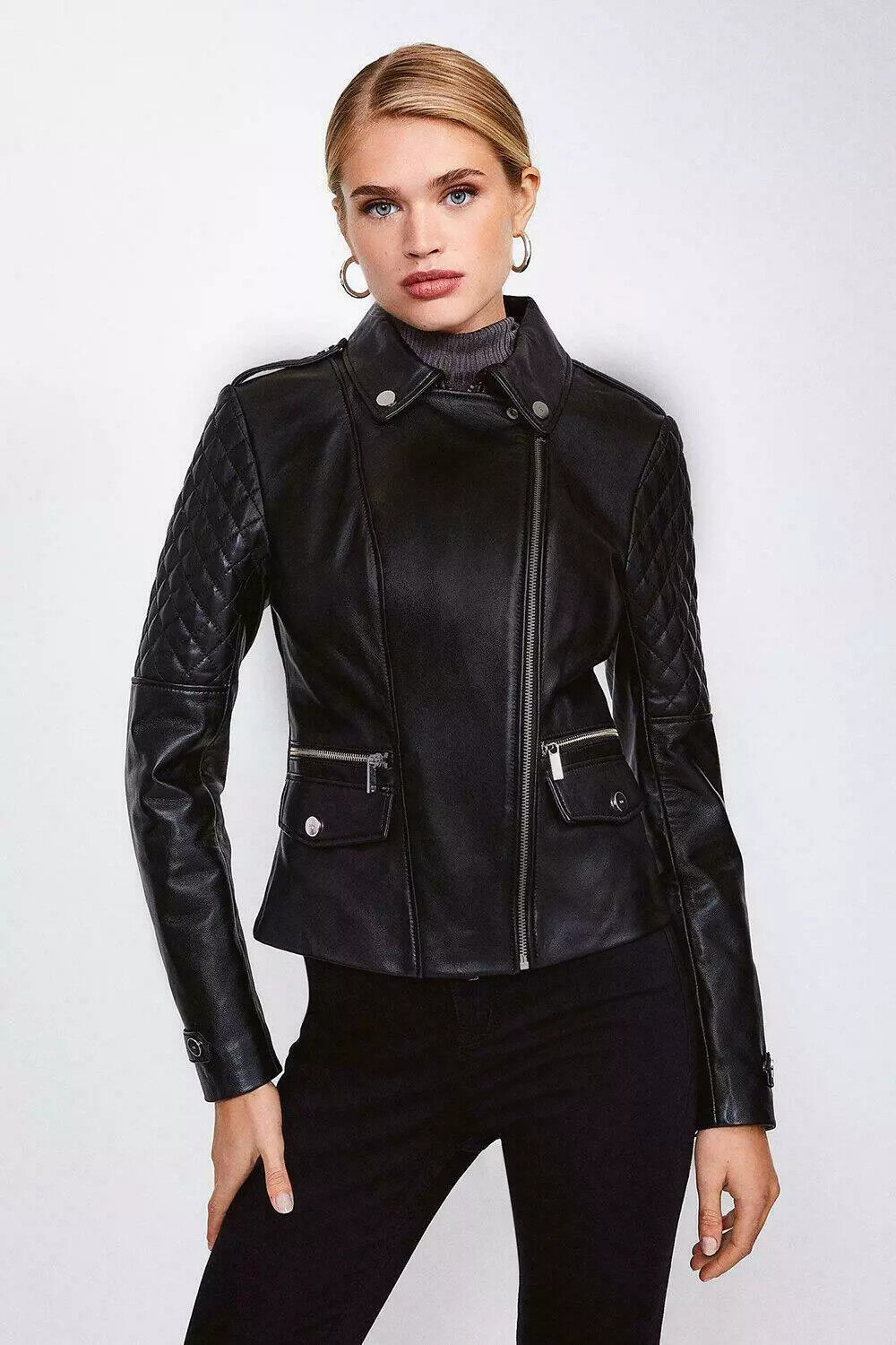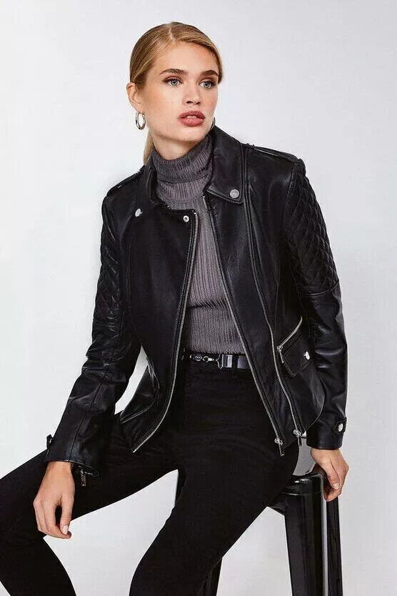 New Womens Leather Jacket Black Pure Lambskin Handmade Stylish Biker Moto Casual