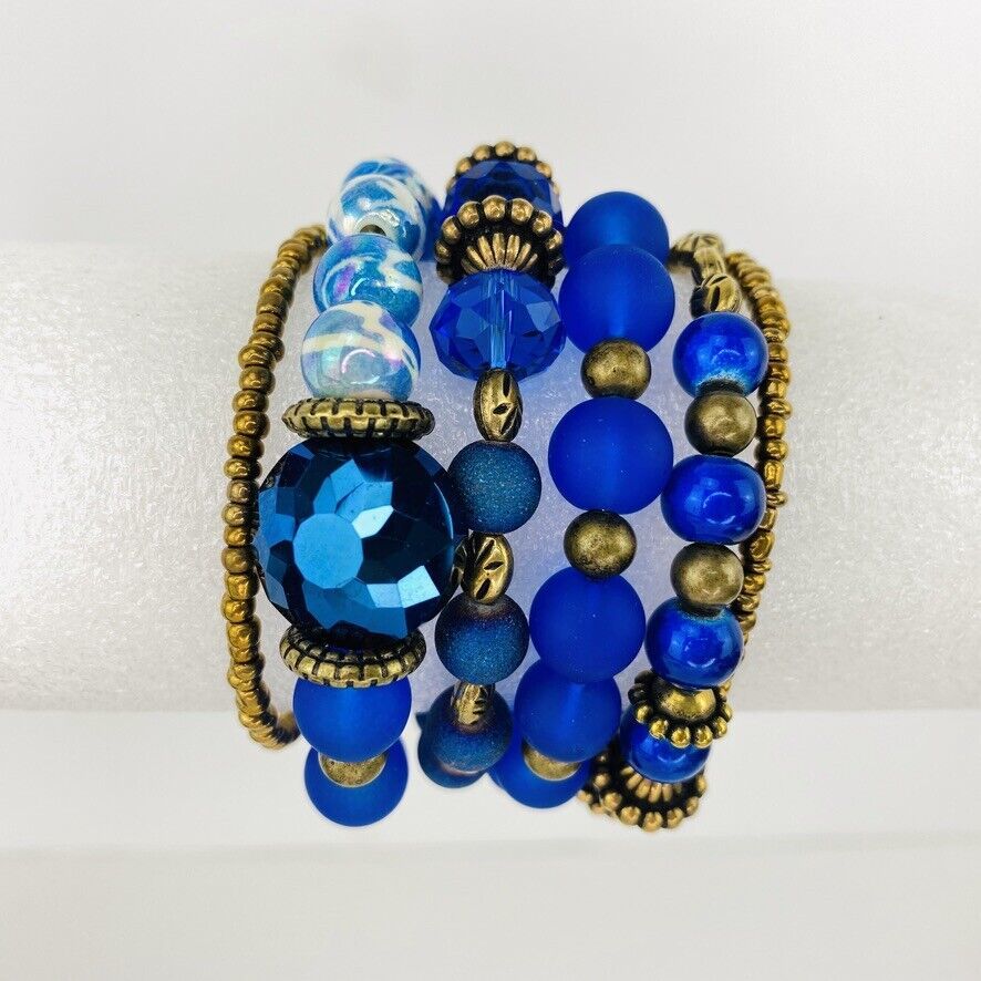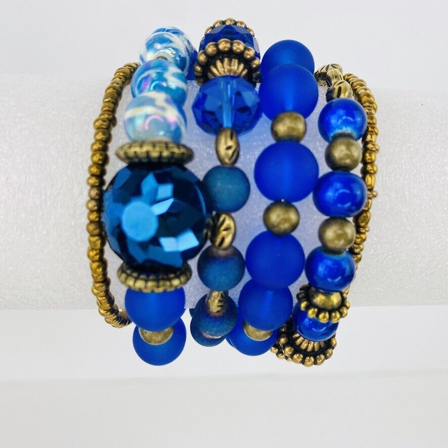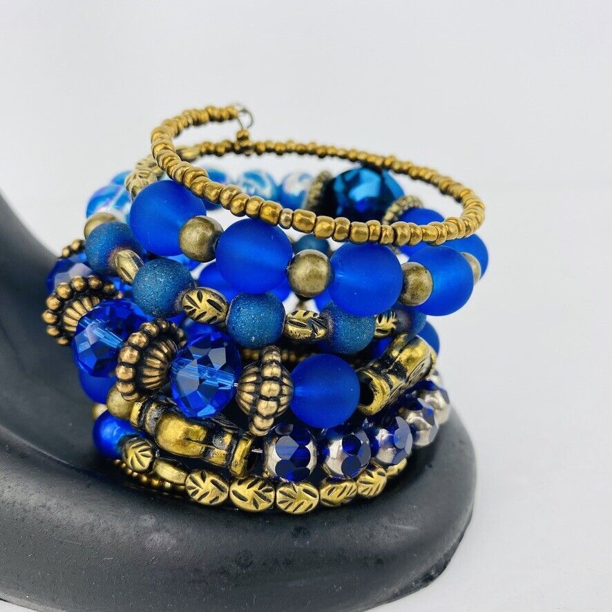 Blue Wrap Stack Bracelet Swarovski Crystals Antique Gold Frosted